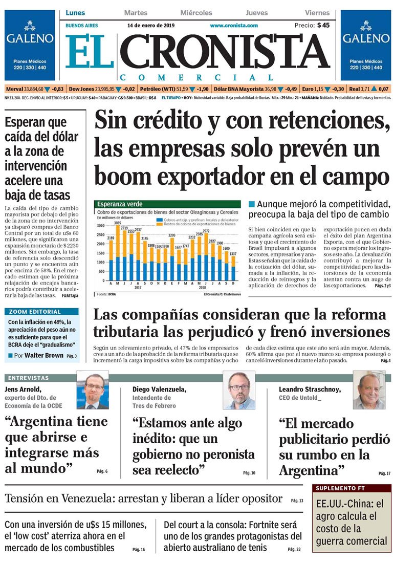 ESTAS SON LAS TAPAS DE LOS DIARIOS DE HOY LUNES 14 DE ENERO