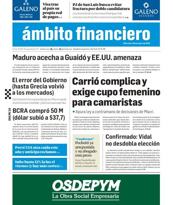 ESTAS SON LAS TAPAS DE LOS DIARIOS DE HOY MIÉRCOLES 30 DE ENERO