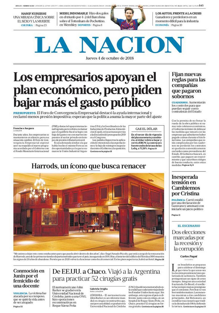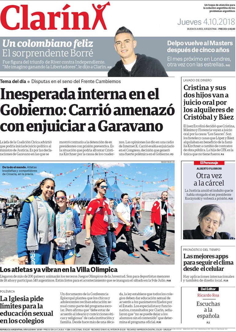 LA TAPA DE LOS DIARIOS DE HOY 4 DE OCTUBRE