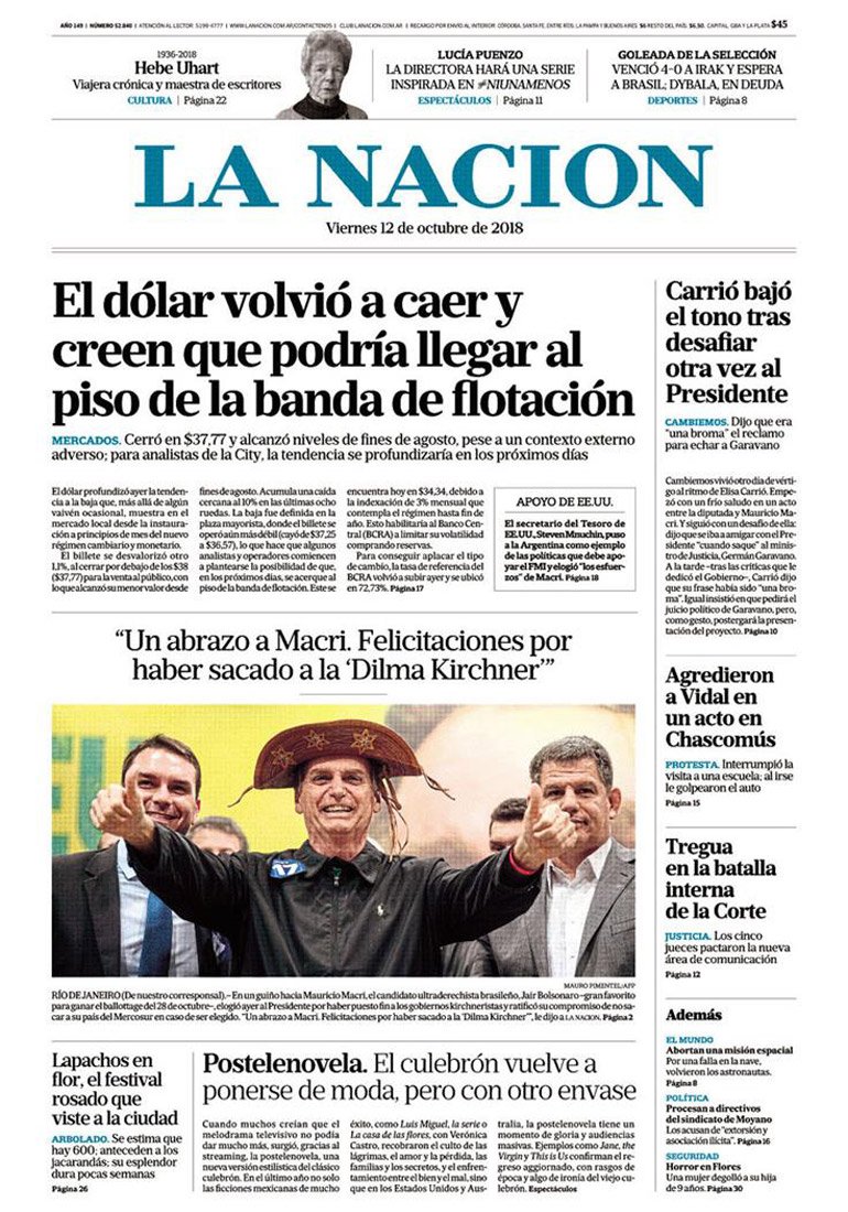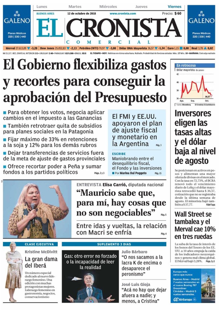 LA TAPA DE LOS DIARIOS DE HOY VIERNES 12 DE OCTUBRE