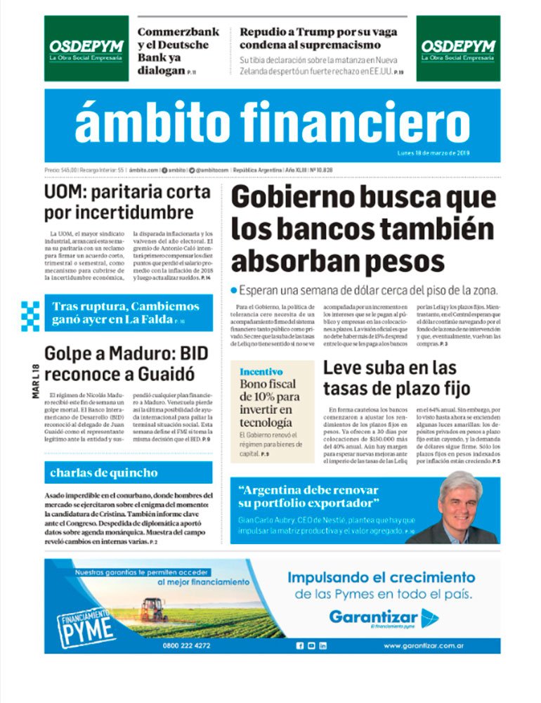 LAS TAPAS DE LOS DIARIOS DE HOY LUNES 18 DE MARZO