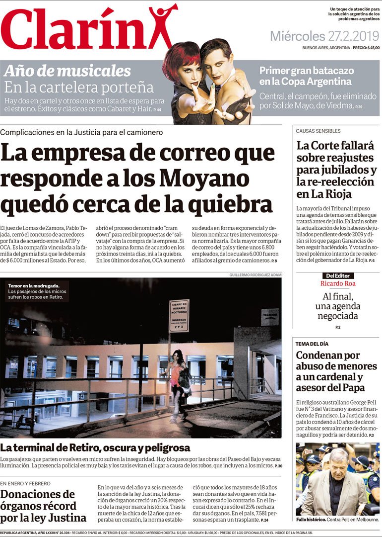 LAS TAPAS DE LOS DIARIOS DE HOY MIÉRCOLES 27 DE FEBRERO